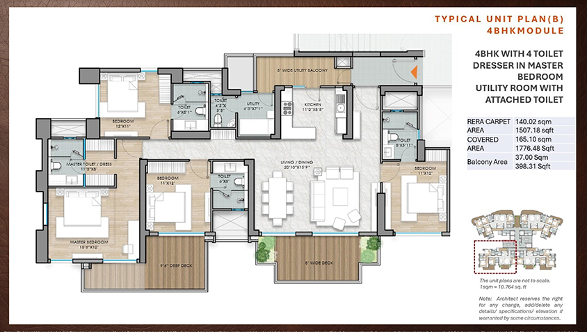 Spread across 11.5 acres, Arihant Seasons is designed as a low-density premium community with only 7 towers, each rising up to G+25 floors. One of the standout features of the project is its spacious planning. Each floor has only 4 apartments, supported by 4 lifts in every tower, ensuring greater privacy, convenience, and exclusivity for residents. These 3 bhk & 4 bhk Flats have lovely floor plans & layouts. Arihant Seasons 3 BHK Apartments sizes are 1706 SQFT 3BHK+3T & 2093 SQFT 3BHK+3T+STORE, and 4bhk Flat 2993 SQFT 4BHK+4T+SERVANT+STORE & 3650 SQFT 4BHK+4T+SERVANT+POOJA. The location of Arihant Seasons adds significant value to the project. Situated on the Yamuna Expressway, the development enjoys strong connectivity and excellent future growth potential. It is strategically close to major landmarks such as Jewar Airport, Film City, and the Formula 1 Track, making it an attractive destination for both end-users and investors.
